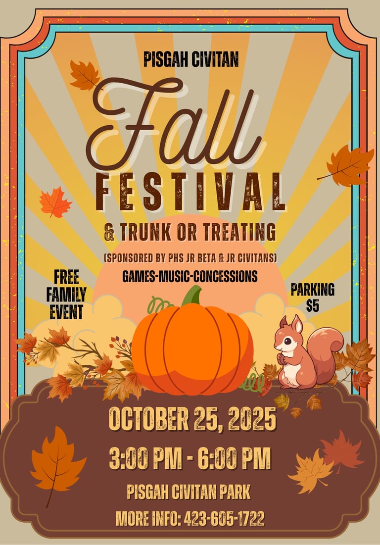 Come join us for an exciting day filled with games, delicious treats, and a charming hayride under the stunning and colorful fall foliage at the picturesque Pisgah Gorge. This event promises to be a delightful celebration with live music provided by talented local churches. Additionally, we are thrilled to announce that Trunk or Treating will be organized by the Pisgah Jr Beta Club, alongside various churches and community businesses. Our lineup includes a variety of fun games and engaging activities sponsored by the dedicated Pisgah Jr Civitans. You can also look forward to concessions offering all your fall favorites, which will be readily available for purchase throughout the event.